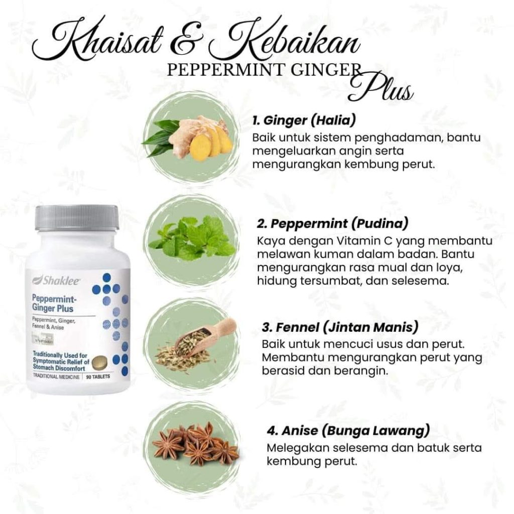 Gabungan herba halia, pudina, jintan manis dan jintan hitam membantu mengurangkan angin dan kembung.